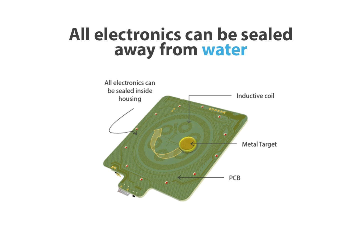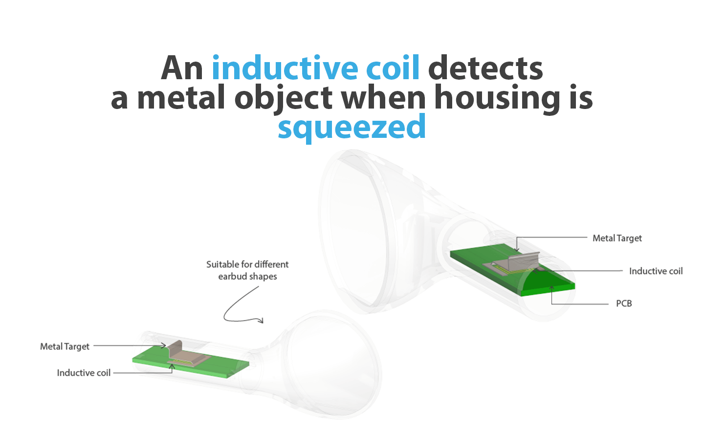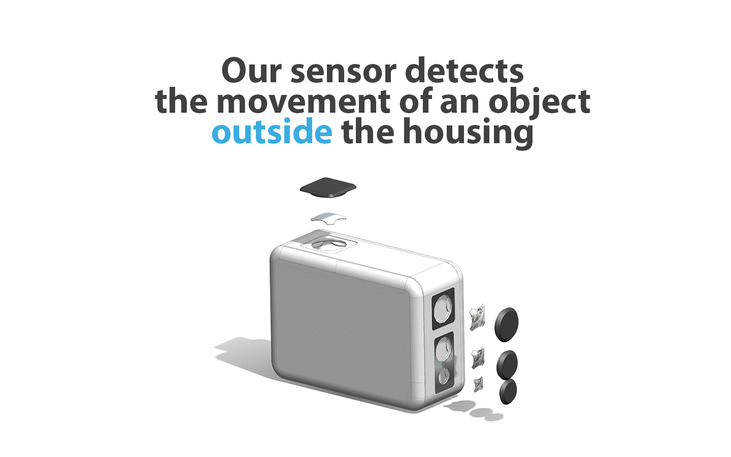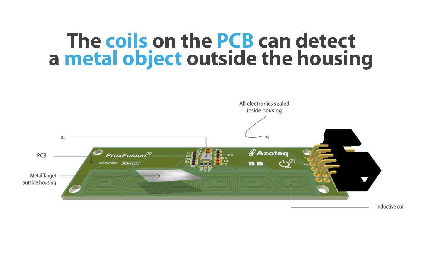 inside the product housing, while detecting the movement of the metal object outside the housing.